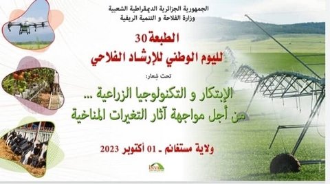 سيتم, لأحد بولاية مستغانم, إطلاق فعاليات الطبعة الثلاثين لليوم الوطني للإرشاد الفلاحي, تحت شعار “الابتكار والتكنولوجيا الزراعية من أجل مواجهة آثار التغيرات المناخية”, حسبما أفاد به, بيان لوزارة الفلاحة و التنمية الريفية. ويجرى تنظيم الحدث في إطار التظاهرات الرسمية المندرجة ضمن رزنامة القطاع لسنة 2023, يضيف ذات المصدر, مشيرا أنه يتزامن أيضا مع الانطلاق الرسمي للموسم الفلاحي 2023-2024. كما تعتبر الفعالية, المنظمة بحديقة “موستالاند”, منبرا للتعريف بمختلف الانجازات المحققة في المجال الفلاحي والريفي وأهم الإجراءات التي اتخذتها الدولة لدعم مختلف الشعب الفلاحية, بالإضافة إلى استعراض النشاطات الفلاحية