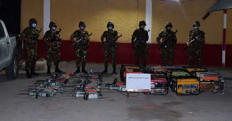 أوقفت مفارز للجيش الوطني الشعبي، بكل من تمنراست وعين ڨزام وبرج باجي مختار وجانت وتندوف، (331) شخصا، وحجزت (11) مركبة و(220) مولدا كهربائيا و(100) مطرقة ضغط ومعدات تفجير وتجهيزات أخرى تستعمل في عمليات التنقيب غير المشروع عن الذهب، بالإضافة إلى (491) كيس من خليط خام الذهب والحجارة.