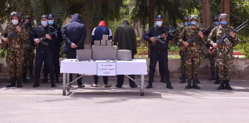 وخلال عمليات متفرقة عبر مختلف النواحي العسكرية، تم حجز كميات ضخمة من الكيف المعالج تُقدر بـ (24) قنطارا و(23) كيلوغراما حاولت المجموعات الإجرامية إدخالها عبر الحدود مع المغرب. في هذا الصدد، أوقفت مفارز للجيش الوطني الشعبي ومصالح الدرك الوطني وحراس الحدود بإقليمي الناحيتين العسكريتين الثانية والثالثة، خلال عمليات متفرقة، (14) تاجر مخدرات، وضبطت (24) قنطارا و(10) كيلوغرامات من الكيف المعالج، فيما تم توقيف (26) تاجر مخدرات وحجز (13) كيلوغراما من نفس المادة، وكذا (45133) قرص مهلوس، في عمليات مختلفة عبر نواحي عسكرية أخرى.