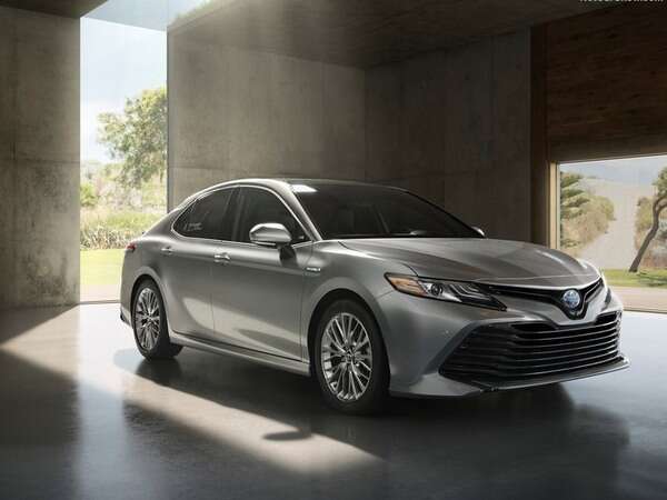 من الخارج حصلت كامري 2018 على تغيير جعلها تبدو فاخرة بشكل أكبر فمن الأمام يظهر الشبك الكبير الشبيه بلكزس مع مصابيح بزوايا حادة وفتحات تهوية عديدة، بينما من الخلف تظهر المصابيح المتصلة بفتحات تهوية