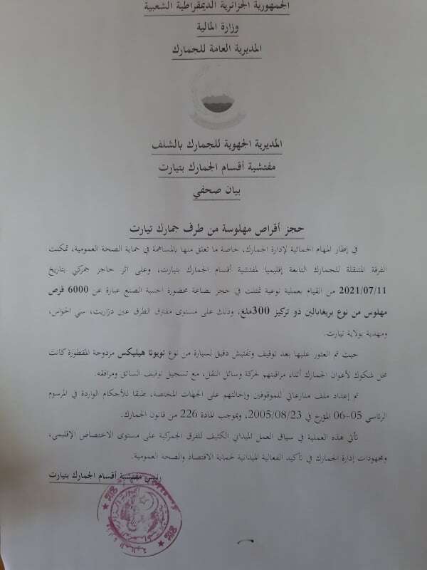 قام أعوان الفرقة المتنقلة للجمارك بتيارت بإحباط محاولة تهريب حسّاسة.