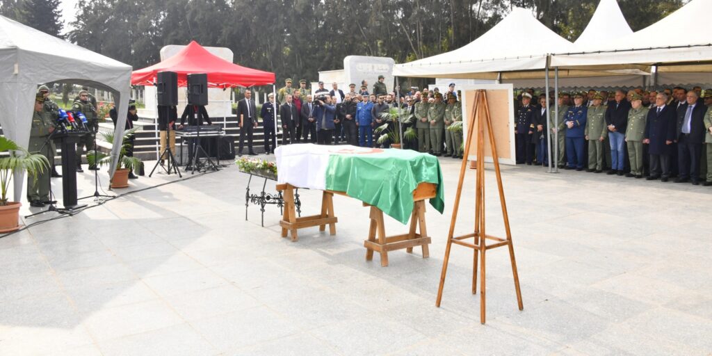 وفي كلمته التأبينية, أشاد مفتش الإعلام والاتصال لأركان الجيش الوطني الشعبي بخصال الفقيد وذكر بمسيرته الحافلة كمجاهد في صفوف جيش التحرير الوطني إبان الثورة التحريرية ثم إطارا ساميا وقائدا في الجيش الوطني الشعبي بعد الاستقلال وأضاف البيان أن السيد الفريق أول السعيد شنقريحة, رئيس أركان الجيش الوطني الشعبي قد تنقل صبيحة اليوم مرفوقا بإطارات سامية من الجيش الوطني الشعبي إلى مقر السكن العائلي للفقيد, أين تم إلقاء النظرة الأخيرة على جثمانه وتلاوة فاتحة الكتاب على روحه الطاهرة.