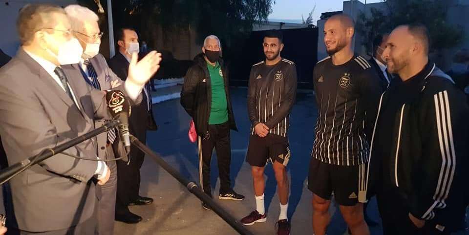 الوزير الأول تبادل أطراف الحديث مع الناخب الوطني جمال بلماضي وكذا قائد الخضر رياض محرز ومتوسط الميدان عدلان قديورة.وقال جراد عبر صفحته الرسمية :في لقائي مع لاعبي المنتخب الوطني بطل إفريقيا، قبل مقابلة منتخب زيمبابوي ضمن التصفيات المؤهلة لنهائيات كأس إفريقيا للأمم 2022 :أحيي فيكم روحكم الوطنية، واستعراضاتكم الفنية في الميدان، لطالما وقف لها الجزائريون داخل و خارج الوطن، ورفعكم عاليا ألوان الجزائر.