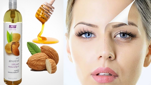 أوراق من النعناع + ماء + ملعقة صغيرة من العسل + ملعقة صغيرة من زيت اللوز