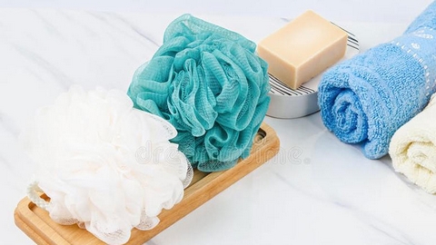 يحذّر خبراء الصحة من إسفنجات الاستحمام، التي من الممكن أن تكون نقطة خصبة للبكتيريا، وهم يوصون بتنظيفها، باستخدام مادة التبييض (بنسبة 10٪)، مرة في الأسبوع. لكن، يفضّل البعد عن استخدام المُبيض على الإسفنج الطبيعي لأنه قد يتلف الألياف.