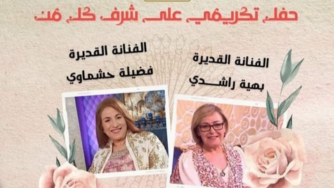 تواصلا لسلسلة التكريمات لعمالقة الفن والإعلام بالجزائر التي بادرت إليها جمعية “الألفية الثالثة” منذ نشأتها عام 2001، ستكرم، سهرة الثلاثاء القادم، بالمسرح الوطني الجزائري “محي الدين بشطارزي” كل من الفنانتين بهية راشدي وفضيلة حشماوي نظير مشوارهما الفني الحافل بالأعمال الفنية المميزة. وسينشط هذا الحفل التكريمي نخبة كبيرة من الفنانين منهم سمير تومي، كريمة الصغيرة، مزيان إيزوران، عبد القادر الخالدي ومحمد بوليفان….