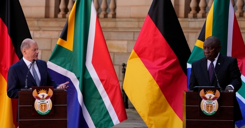 بحث رئيس جنوب إفريقيا سيريل رامافوزا، ومستشار جمهورية ألمانيا الاتحادية أولاف شولتز،تعميق العلاقات الثنائية في مجالات التصنيع والتحول لاقتصاد أخضر وأمن الغذاء والطاقة.