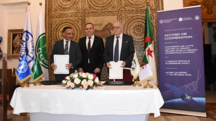 وقّعت الوكالة الفضائية الجزائرية اتفاقية مع هيئة مكافحة الجراد الصحراوي، لتوظيف صور الأقمار الصناعية في رصد ومراقبة انتشار هذه الآفة بالمنطقة الغربية.