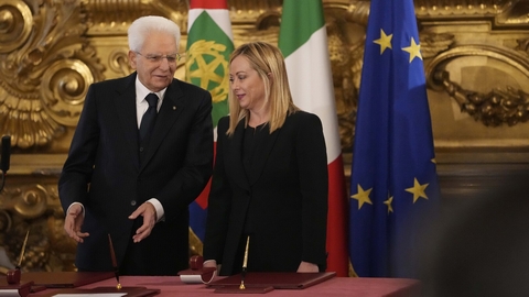 وأدت ميلوني (45 عاما) اليمين الدستورية أمام الرئيس الإيطالي سيرجيو ماتاريلا في القصر الرئاسي، لتصبح أيضا أول امرأة تتولى رئاسة الوزراء في البلاد، حيث أنها أعلنت حكومتها الجمعة.