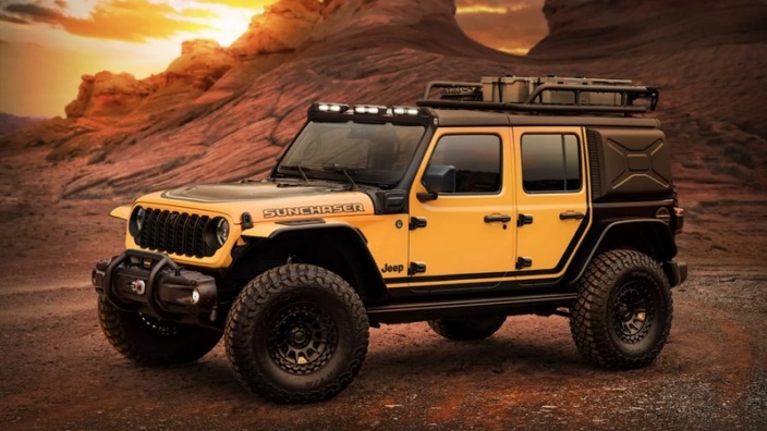 استعرضت جيب سيارة اختبارية تجمع بين الابتكار العملي وروح المغامرة، وأضافت لها إكسسوارات أصلية غير متوفرة للعملاء. حيث تباهت رانجلر 4xe Sunchaser بخيمة سقف ضمن فعاليات Overland Expo West.