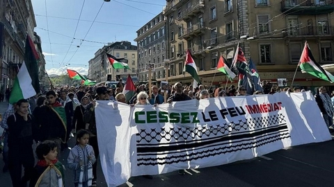 تظاهر ،الاحد آلاف الأشخاص في مدينة جنيف السويسرية للمطالبة بوقف الإبادة الجماعية في غزة التي تتعرض لهجمات إسرائيلية مكثفة منذ 7 أكتوبر 2023.