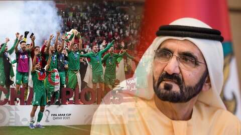 هنأ نائب رئيس دولة الإمارات العربية المتحدة، رئيس مجلس الوزراء وزير الدفاع، حاكم دبي، الشيخ محمد بن راشد آل مكتوم. المنتخب الجزائري للمحليين لكرة القدم، عقب تتويجه بكأس العرب فيفا-2021.