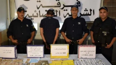 وجاءت العملية وفق ذات البيان بناء على معلومات مؤكدة وردت إلى عناصر الشرطة القضائية بأمن دائرة بريكة تفيد بقيام شخص بحيازة كمية معتبرة من المخدرات والمؤثرات العقلية وتخزينها بمنزله واستغلاله كمكان للترويج لها بأحد أحياء المدينة. وبعد استصدار إذن بتفتيش مسكن المشتبه به، تم العثور على الكمية المعتبرة من المخدرات عبارة عن صفائح كانت مخبأة بحقيبة ظهرية وأخرى داخل كيس خاص بمادة الدقيق إلى جانب 98 قرصا مهلوسا ومبلغ مالي يقدر بـ4 مليون و300 ألف دج من عائدات الترويج وأربعة أوراق نقدية مزورة من فئة 1.000 دج. وقدم المشتبه فيه البالغ من العمر 30 سنة بعد استيفاء إجراءات التحقيق أمام الجهات القضائية المختصة إقليميا، حسب ذات البيان.