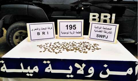 تمكن عناصر فرقة البحث والتحري BRI، نهاية الأسبوع المنصرم، من توقيف شخصين وحجز 195 قطعة نقدية أثرية تعود للحقبة النوميدية، بولاية ميلة.