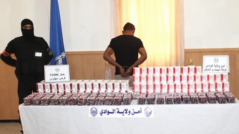 أعلنت مصالح أمن الوادي، عن توقيف شخص مروج للمخدرات، حيث أفضت العملية لحجز 31000 كبسولة من المؤثرات العقلية، مع استرجاع مركبة رباعية الدفع مسروقة.