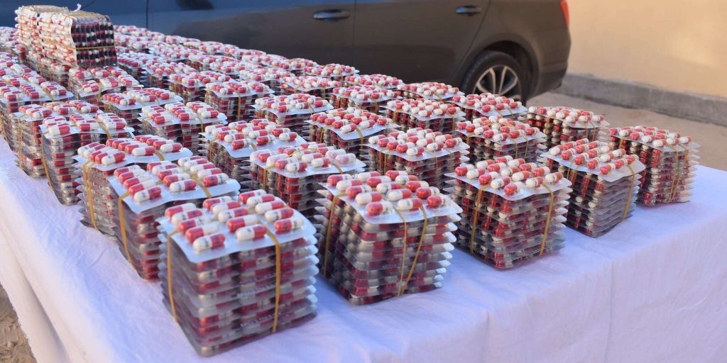 وبعد إخضاع شاحنة صغيرة وشخصين كانا على متنها للمراقبة والتفتيش تم العثور على كمية المؤثرات العقلية خلف كرسي السائق كانت مخبئة داخل حقيبة.