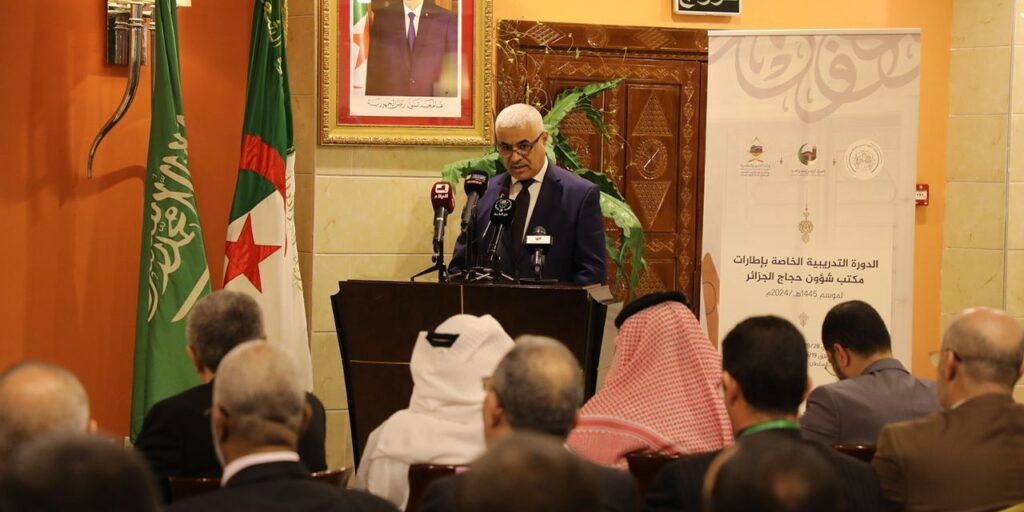 من جهته، أكد المدير العام للتوجيه الديني والثقافة الإسلامية بوزارة الشؤون الدينية والأوقاف مراد معيزة، “حرص الجزائر على توفير أحسن الظروف للحجاج الميامين بالبقاع المقدسة من خلال عمل الوفود التحضيرية التي تتوجه إلى المملكة العربية السعودية ومراكز تدريب الحجاج بالجزائر إلى غاية انطلاق أول رحلة وعودة آخر فوج من الحجيج”.
