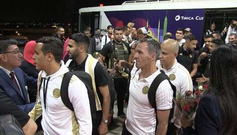 واصطحب رياض محرز لدى خروجه من مطار القاهرة اثنين من الحراسة الخاصة وسبق بعثة الخضر للحافلة، قبل أن يخرج باقي اللاعبين تباعًا.