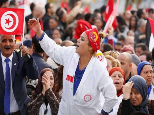 وأضرِب محامو تونس، الاثنين، عن العمل في محاكم البلاد كافة، كما قرر أساتذة التعليم الثانوي، تنظيم يوم غضب وطني الأربعاء.