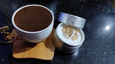 وعند عودته يحتسي الرجل القهوة مع أفراد العائلة، لكنه لا يرجع الفنجان فارغا، بل يضع فيه خاتما أو قطعة ذهبية أو نقود، ليكون هدية لزوجته تعبيرا منه على امتنانه وشكره لها على مجهودها الذي بذلته خلال شهر رمضان المبارك.