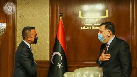 جاء ذلك خلال استقباله وزير الخارجية الإيطالي لويجي دي مايو الذي وصل طرابلس، في “زيارة قصيرة” تأتي في إطار التشاور وتبادل وجهات النظر بين البلدين، وفق بيان للخارجية الليبية التي أوضحت فيه أن محادثات جرت بين السراج ودي مايو، حضرها من الجانب الإيطالي الأمين العام لوزارة الخارجية إليزابيتا بيلوني، والسفير جوزيبي بوتشيني، وعدد من المسؤولين السياسيين والأمنيين، فيما حضر المحادثات عن الجانب الليبي كل من وزير الخارجية محمد سيالة، وسفير طرابلس لدى الاتحاد الأوروبي حافظ قدور، ومدير الإدارة الأوروبية بوزارة الخارجية حاجي دهان.