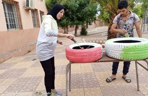 قصد القضاء على النفايات المطاطية والبلاستيكية واستغلالها أحسن استغلال، وضمن انشطته اليومية، سشرع نادي البيئة بدار الشباب “بضياف عبد القادر”، ببلدية الرمشي بولاية تلمسان، في تجهيز العجلات المطاطية المستعملة وتنظيفها وتقطيعها وفق أشكال تزيينية وبأشكال الورود أو أشكال هندسية من أجل صباغتها لتزيين فضاء المؤسسة. وبهدف إعادة تدوير النفايات المطاطية والبلاستيكية أيضا.