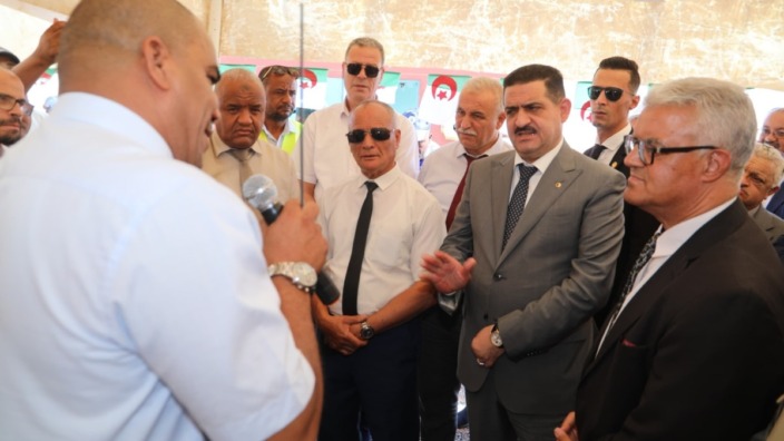 كما قام السيد الوزير والوفد المرافق له بوضع حيز الخدمة لبئر عميق لحقل الجلب لمطار تيميمون سيسهم في تحسين وزيادة نسبة التزود بالمياه الصالحة للشرب لساكنة عاصمة ولاية تيميمون.