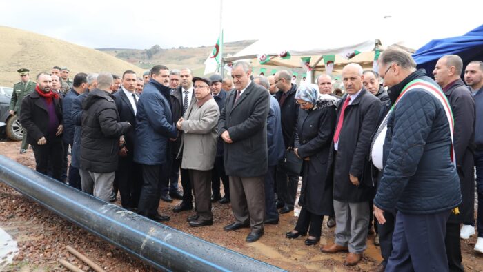 كما تضمنت الزيارة عدة محطات ميدانية، أبرزها بلدية تاشتة زوقاغة، حيث أشرف السيد الوزير على انطلاق مشروع تدعيم وتوسيع التزود بالمياه الصالحة للشرب لفائدة سكان المنطقة، انطلاقًا من منقبي حقل الالتقاط بالعبادية. وأكد على أهمية الإسراع في وتيرة الإنجاز نظرًا للكثافة السكانية العالية التي تعرفها المنطقة. وببلدية تيبركانين، أعطى الوزير إشارة انطلاق مشروع تدعيم التزود بالمياه الصالحة للشرب، انطلاقًا من خزان 3000 م³ “نظام سد أولاد ملوك”، وألح على ضرورة احترام المواصفات التقنية خلال الإنجاز وضمان تسليم المشروع في آجاله المحددة. وببلدية زدين، عاين الوزير مشروع تحويل قرية زدين، الواقعة داخل حوض سد أولاد ملوك، إلى موقع جديد أكثر أمانا. وأكد أن هذا المشروع يترجم إرادة السلطات العمومية في حماية السكان من خطر الفيضانات، مشددًا على ضرورة رفع أي عراقيل قد تؤثر على استكماله.