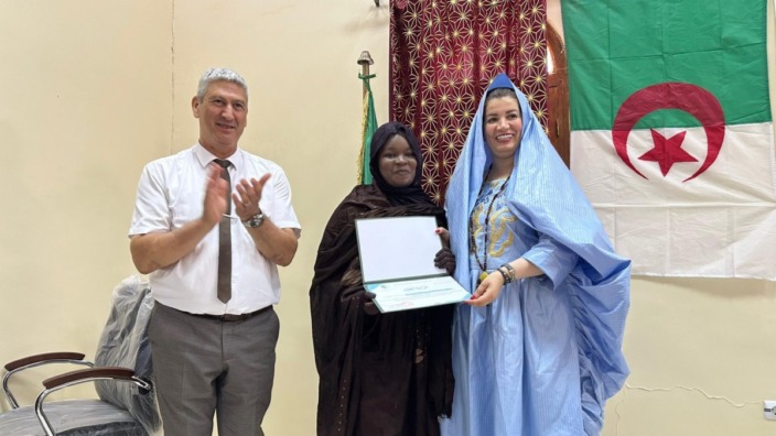 وأشار البيان إلى أنه تم بمناسبة هذه الزيارة، “تسليم أجهزة خاصة بالمرأة الريفية بكل من بلديتي عين قزام وتين زواتين في مجالات الطبخ, الخياطة, الطرز والجلود, وذلك في إطار مرافقة المرأة الماكثة بالبيت على إنشاء مؤسسات ونشاطات مدرة للدخل”, كما تم تسليم “شهادات تكوين لنساء استفدن من دورات تكوينية في إطار تجسيد الاتفاقية المبرمة بين قطاعي التضامن الوطني والأسرة وقضايا المرأة وقطاع التكوين والتعليم المهنيين”.