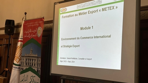 اعلنت وزارة التجارة الاحد ،عن انطلاق بمقر الغرفة الجزائرية للتجارة والصناعة الدورة التكوينية Metex المتخصصة في مهن التصدير لفائدة إطارات وأصحاب المؤسسات الإقتصادية المهتمة بالتصدير .