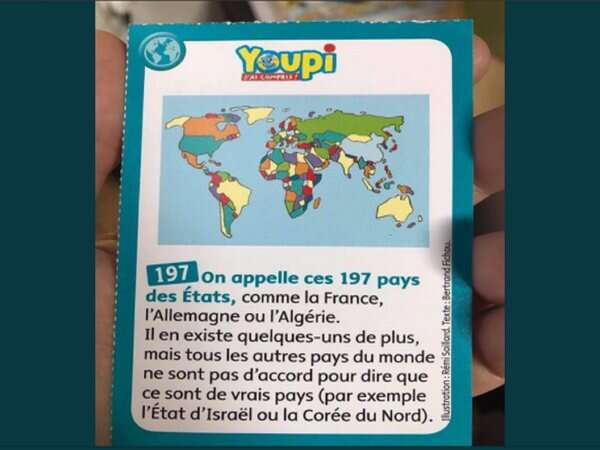 أعلنت مجموعة “بايار”، الإثنين، أن عدد مجلة “يوبي” للأطفال سحب من السوق الثلاثاء، بسبب تضمنه خريطة تفيد بأن إسرائيل ليست دولة حقيقية. ويأتي ذلك، استجابة لطلب فرانسيس كاليفات، رئيس المجلس