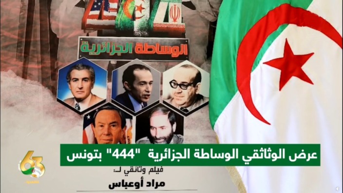 وعرض وثائقي”.444 ….الوساطة الجزائرية”” للمخرج التلفزيوني مراد أوعباس، والذي يوثق دور الوساطة الجزائرية الناجحة لحلحلة أزمة الرهائن الأمريكيين في طهران، والتي انتهت بفضل جهود الدبلوماسية الجزائرية، في تونس ، خلال حفل بمناسبة الذكرى ال 63 لاستقلال الجزائر، بادرت الى تنظيمه القنصلية العامة الجزائرية في تونس.