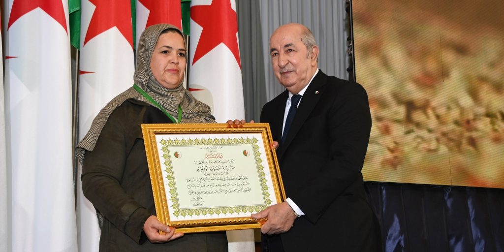 وفي رسالته بمناسبة إحياء اليوم العالمي للمرأة المصادف لـ8 مارس، شدد الرئيس تبون على أن قضايا المرأة والأسرة ستظل من أهم انشغالات الحكومة، التي أدعوها في هذه المناسبة إلى تكثيف دعمها ومرافقتها لكل جهد يرمي إلى ترسيخ التضامن الوطني وترقية المرأة، ورعاية الأسرة الجزائرية، وأوضح أن الجزائر التي كرست في تشريعاتها مبدأ المناصفة وتكافؤ الفرص، تبني سياساتها العمومية بإدراك تام لأولوية تثمين وتأهيل الموارد البشرية، معتبرا أن المرأة تتقاسم مع الرجل، على حد سواء، قيم المواطنة وتتشارك معه في الحقوق والواجبات. وأشار بهذا الصدد، إلى الإحصائيات التي قال أنها أثبتت مدى ما أحرزته المرأة من مكاسب، حيث تتبوأ مرتبة متقدمة في نسب شغل مناصب العمل والوظائف النوعية في قطاعات حيوية عديدة، تعكسها على الخصوص أعداد المنتسبات إلى قطاعات العدالة والتربية والصحة، مضيفا أن المرأة برهنت أينما كانت بأنها عماد مسيرة الجزائر الجديدة نحو الاستثمار في الإنسان، وفي الكفاءة والتميز ونحو التأسيس لثقافة النزاهة وقيمة العمل ونبذ كل أشكال الفساد في عهد جديد، لا ولاء فيه إلا للجزائر، ولا غاية تعلو فيه فوق خدمة الشعب، والوفاء لآماله وتطلعاته. وبذات المناسبة، قال رئيس الجمهورية أن المرأة الجزائرية تحيي عيدها العالمي وهي تواصل خوض تحديات بناء الدولة الحديثة والمجتمع الذي يسوده الاستقرار وتطبعه السكينة، معتزة بانتمائها إلى شعب حر أصيل يخلد تضحيات بناته اللواتي سجلن أقوى المواقف وأسمى معاني الروح الوطنية في أصعب المحن. وذكّر بتضحيات المرأة الجزائرية إبان ثورة التحرير المجيدة، حيث كانت مثالا للشجاعة، مكافحة ومناضلة وفدائية، ترددت أصداء كفاحها الملهم عنوانا للتعلق بالحرية والكرامة وغدت بمآثرها رمزا للغيرة على الأرض والشرف، كما أنها انخرطت بالتزام وإباء بالأمس القريب في دحر شرور الإرهاب الهمجي الذي استهدف ضرب الدولة الوطنية ومؤسساتها. وخلص إلى القول، لا عجب أن ترتقي المرأة الجزائرية في الجزائر الحرة المستقلة بمؤهلاتها العلمية والمهنية على سلم الرتب في الأسلاك النظامية وتستحق المهام العليا والمسؤوليات الرفيعة في الإدارات والمؤسسات وتتفوق في أدق تخصصات العلوم والمعارف وأعقد فروع تكنولوجيات العصر في الجامعات ومراكز البحث وتكد في العمل المنتج للخيرات في مزارع مداشرنا وقرانا الحافظة لعفة وعزة المرأة الريفية وتتطلع إلى مسار الإنعاش الاقتصادي الذي باشرناه بالاندماج في الانطلاقة الواعدة لمشاريع المؤسسات الناشئة في بلادنا.