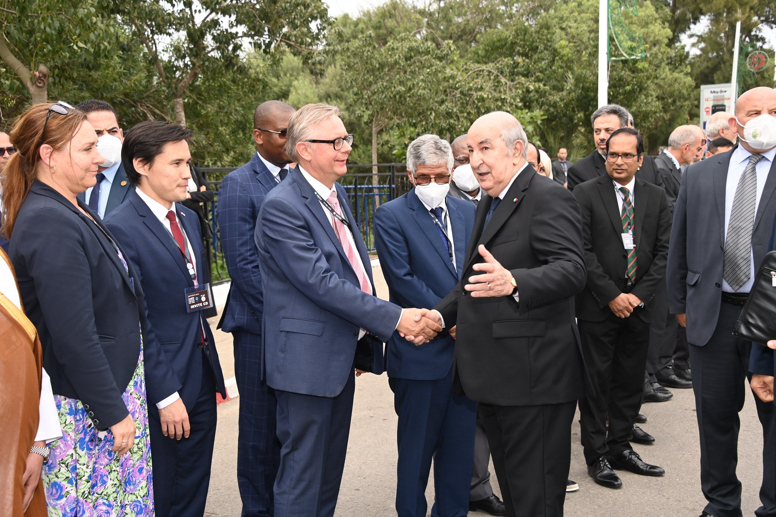 وخلال إشرافه على افتتاح الطبعة ال 54 لمعرض الجزائر الدولي, والتي تعرف لأول مرة إطلاق صالون جزائري رقمي لعرض القطاعات الاستراتيجية, توقف رئيس الجمهورية عند الجناح المخصص لإيطاليا ضيف شرف هذه الطبعة, حيث تبادل الحديث مع مختلف المتعاملين وأبرز أهمية التعاون بين البلدين في عدة مجالات. وأعرب الرئيس تبون بهذا الخصوص عن ارتياحه لمستوى العلاقات بين الجزائر وإيطاليا التي تعود –مثلما قال– لسنوات طويلة, مشيرا الى أن الجزائر مستعدة للتعاون مع إيطاليا في كل المجالات التي تهم البلدين.