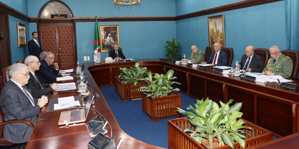 وجاء في البيان ترأس، السيد عبد المجيد تبون، رئيس الجمهورية، اجتماعا خصص لتقييم عمل الوكالة الفضائية الجزائرية، وبحث وضعيتها الحالية من الجانبين الهيكلي والمالي، وكيفيات تطوير عملها، حيث تقرر تزويدها بأحدث الوسائل التقنية الفضائية، تماشيا مع التكنولوجيا الحديثة، وكذا رصد الإمكانيات المالية والبشرية المكونة في اختصاصات عالية ودقيقة، من خريجي معاهد التعليم العالي للرياضيات والمدرسة العليا للذكاء الاصطناعي، وفق نظرة استشرافية، تمتد إلى غاية 2040، وهذا بالتعاون مع الشركاء الاستراتيجيين للجزائر. وقد حضر الاجتماع –وفقا للمصدر ذاته– السيد الوزير الأول، السيد رئيس أركان الجيش الوطني الشعبي، السيد مدير ديوان رئاسة الجمهورية، السيد وزير المالية، السيد وزير البريد والمواصلات السلكية واللاسلكية، السيد مستشار رئيس الجمهورية المكلف بالشؤون المتعلقة بالأمن والدفاع، السيد المدير العام للوكالة الفضائية الجزائرية، السيد رئيس مصلحة الجغرافيا والكشف عن بعد بالجيش الوطني الشعبي.
