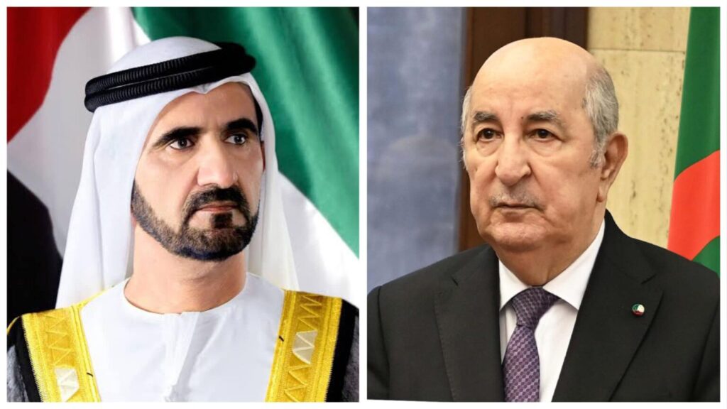 تلقى رئيس الجمهورية، السيد عبد المجيد تبون، اليوم الاثنين، رسالة تهنئة من نائب رئيس دولة الإمارات، رئيس مجلس الوزراء، حاكم دبي، السيد محمد بن راشد آل مكتوم، بمناسبة الذكرى الـ 70 لاندلاع الثورة التحريرية المجيدة.
