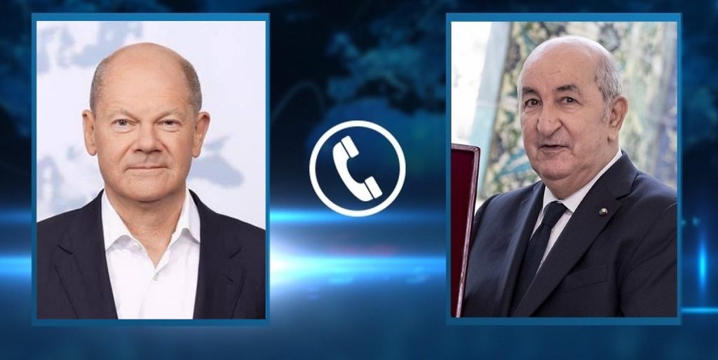 تلقى رئيس الجمهورية، السيد عبد المجيد تبون، مكالمة هاتفية من مستشار جمهورية ألمانيا الاتحادية، السيد أولاف شولتز، جرى خلالها تبادل الرؤى حول العلاقات الثنائية وسبل تعزيزها في عديد المجالات، بما فيها الطاقة والصناعة. كما تطرقا بذات المناسبة، إلى قضايا إقليمية ودولية راهنة تهم البلدين، لا سيما الوضع في القارة الأوروبية، ومستجدات الأوضاع في الشرق الأوسط، بالإضافة إلى ليبيا ومنطقة الساحل.