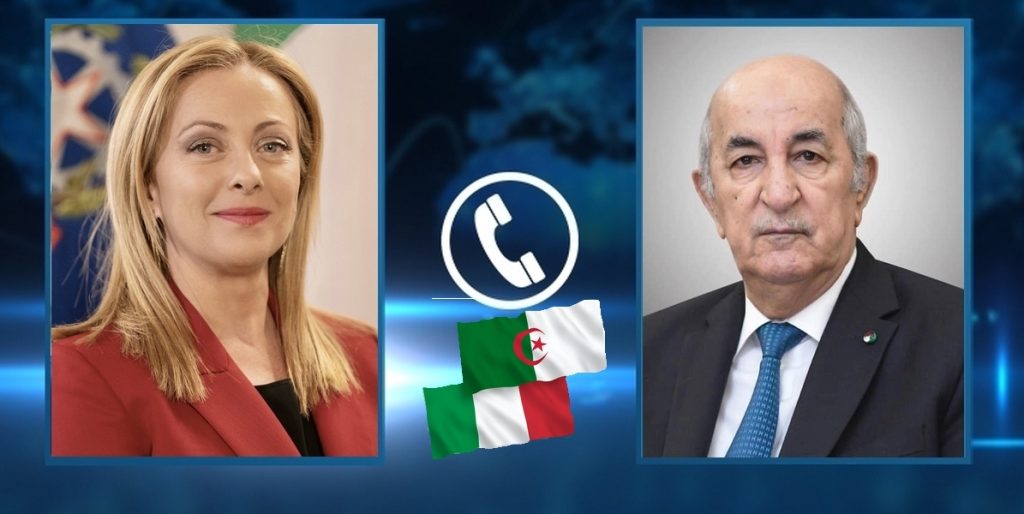 تلقى رئيس الجمهورية، السيد عبد المجيد تبون، الجمعة، مكالمة هاتفية من رئيسة الوزراء الإيطالية، السيدة جورجيا ميلوني، أجرى من خلالها محادثات جد معمقة حول مسائل جهوية مشتركة، في صدارتها المؤتمر الإيطالي-الإفريقي الذي ستحتضنه العاصمة الإيطالية روما نهاية الشهر الجاري، حسبما أورده بيان لرئاسة الجمهورية.