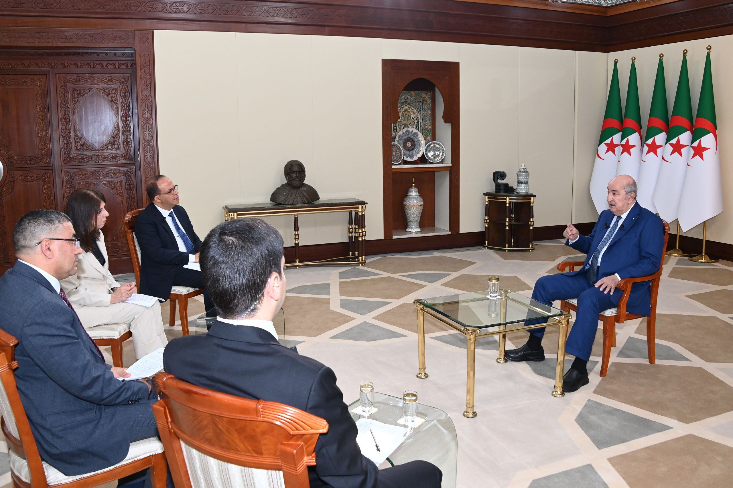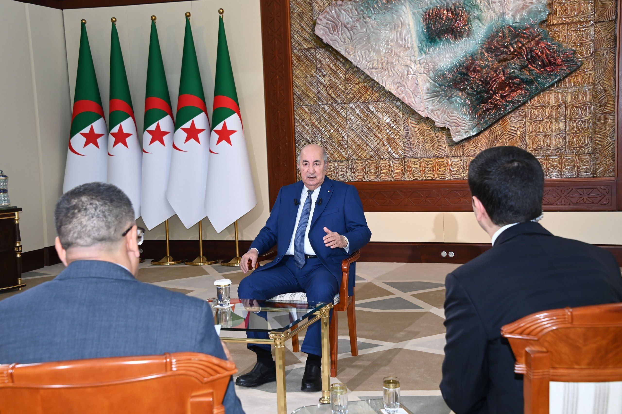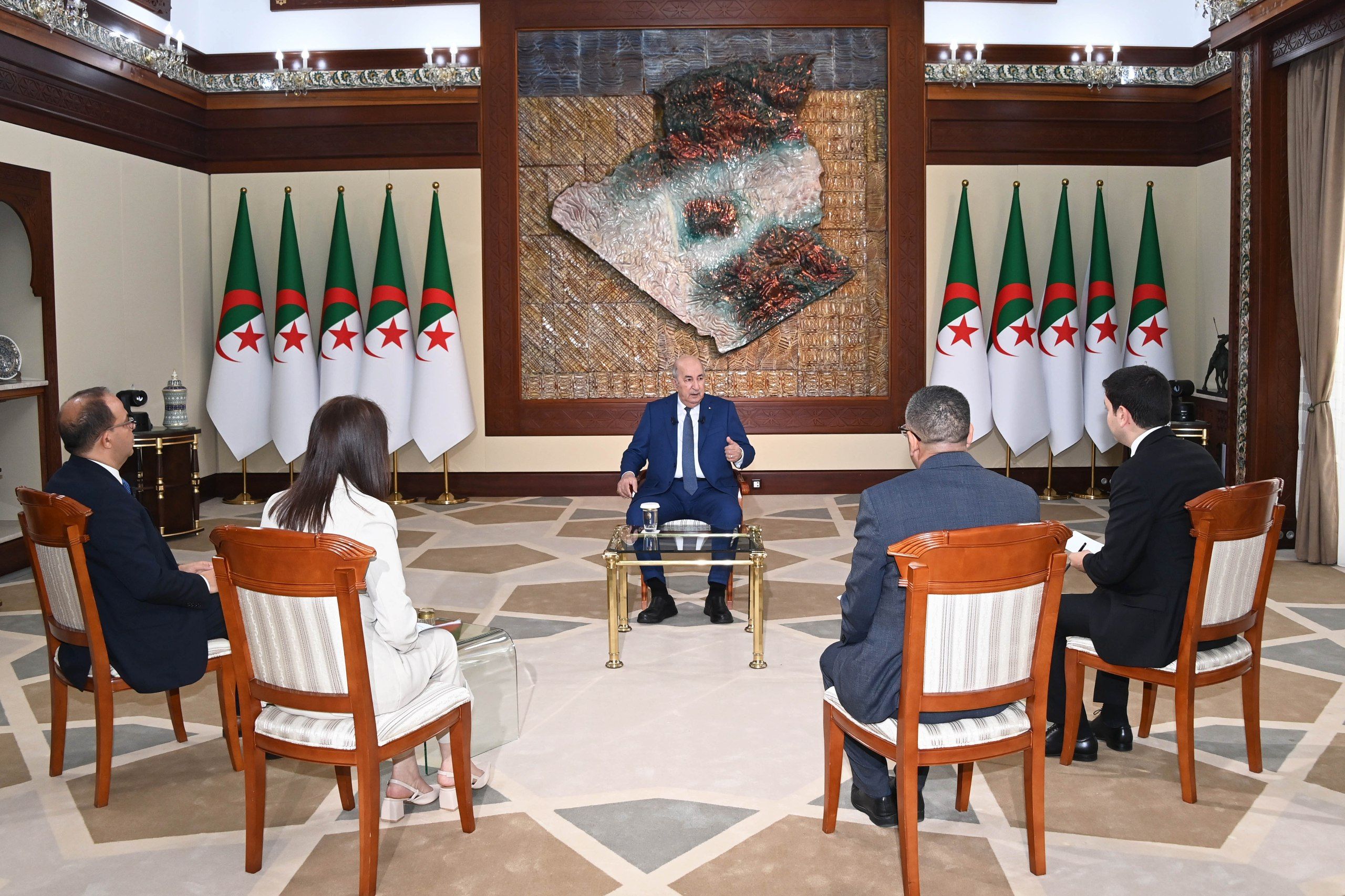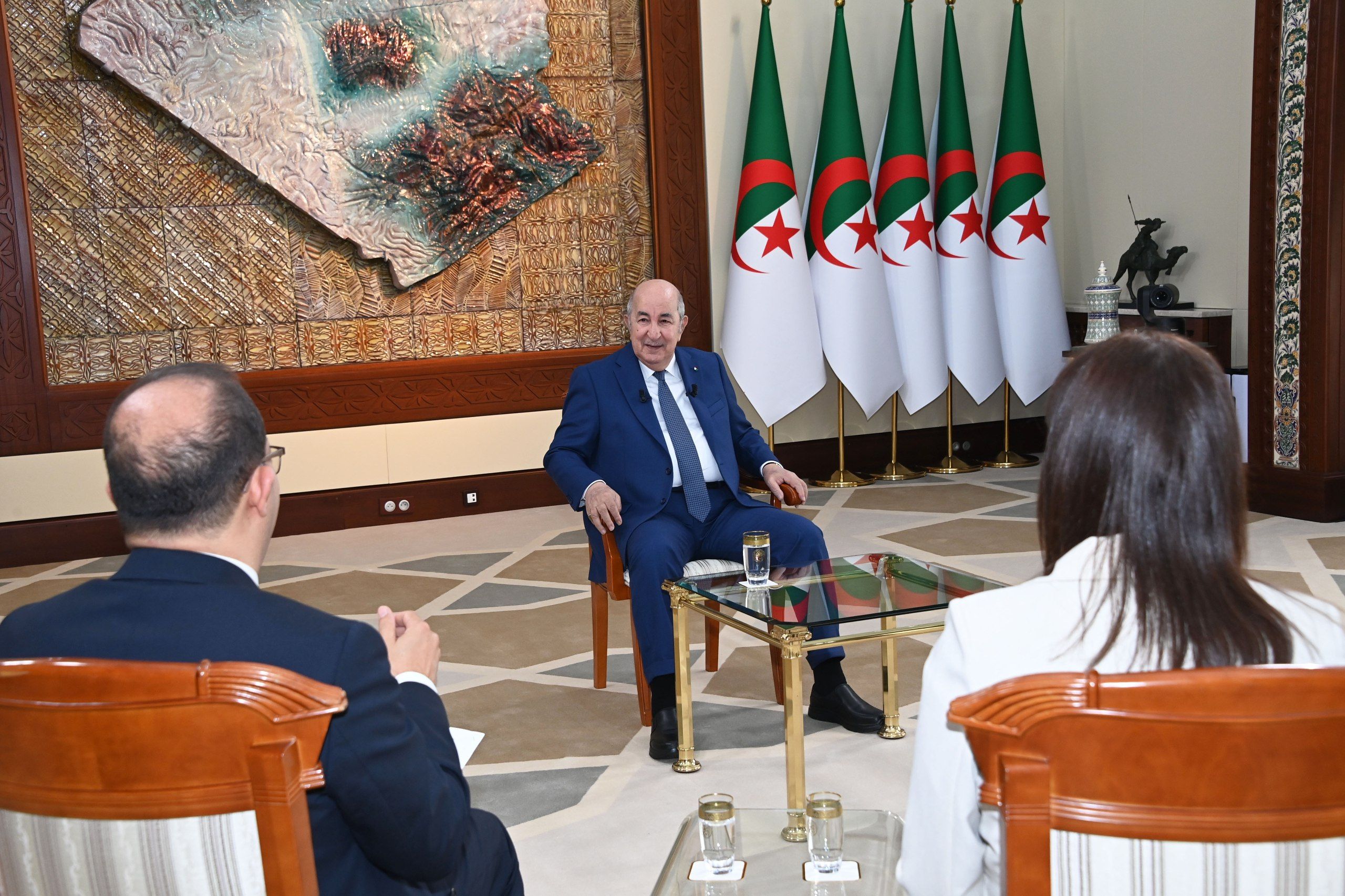 وقال الرئيس تبون، في فيديو قصير للقاء الذي نشرته رئاسة الجمهورية وردا على سؤال حول أزمة النيجر نحن مع الشرعية الدستورية ويجب العودة لها وسنساعدهم على ذلك، كما تطرق رئيس الجمهورية، عبد المجيد تبون، إلى زيارته المرتقبة إلى فرنسا، وقال الرئيس تبون، حول موعد الزيارة أن زيارتنا إلى فرنسا ما زالت قائمة، وننتظر برنامج الزيارة من قبل الرئاسة الفرنسية. أما بخصوص الحرائق الأخيرة، قال الرئيس تبون، أن الجزائر اقتنت طائرة كبيرة وتم تأجير 6 طائرات مع العمل على تقوية عتاد الحماية المدنية، كما تحدث رئيس الجمهورية عن السكن في الجزائر، قائلا: المشاريع السكنية لن تتوقف وتواصلنا مع أصدقائنا الصينين لإنجاز مشاريع طموحة في هذا المجال. كما قال رئيس الجمهورية، إن الجزائر أصبحت أول بلد إفريقي وثالث بلد عربي في إنتاج المياه باستخدام تقنية تحلية مياه البحر، قائلا: إنتاجنا من المياه سيبلغ 1 مليار و400 مليون متر مكعب يوميا باستكمال إنجاز محطات التحلية المبرمجة.