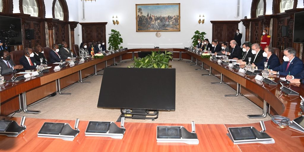 قبل ذلك كان الرئيس تبون، قد أجرى محادثات على انفراد مع نظيره الأوغندي الذي يقوم بزيارة دولة إلى الجزائر. يذكر، أن الرئيس موسيفيني قد شرع، السبت، في زيارة دولة إلى الجزائر تدوم إلى غاية الثلاثاء، وذلك بدعوة من رئيس الجمهورية، السيد عبد المجيد تبون.
