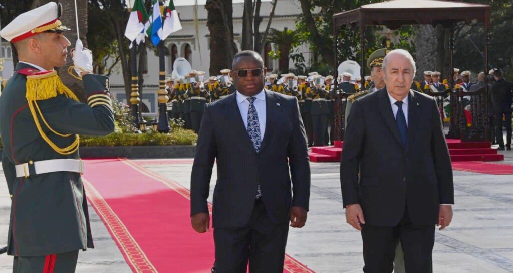 وقد استعرض الرئيسان تشكيلات من مختلف قوات الجيش الوطني الشعبي، أدت لهما التحية الشرفية قبل أن يستمعا إلى النشيدين الوطنيين للبلدين. وقبل ذلك، كان رئيس جمهورية سيراليون، قد توجه إلى مقام الشهيد (الجزائر العاصمة)، حيث وقف دقيقة صمت ووضع إكليلا من الزهور أمام النصب التذكاري المخلد لشهداء الثورة التحريرية المجيدة. كما زار الرئيس السيراليوني الذي كان مرفوقا بوزير الشؤون الخارجية والجالية الوطنية بالخارج، السيد أحمد عطاف، المتحف الوطني للمجاهد وتلقى شروحات حول مختلف مراحل تاريخ الجزائر، لا سيما تلك المتعلقة بالثورة التحريرية المجيدة.
