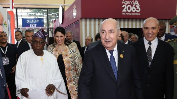 وخلال هذه الزيارة, تنقل رئيس الجمهورية بين أجنحة مؤسسات وطنية عمومية وخاصة, شركات ناشئة ومؤسسات وهيئات إفريقية, إضافة إلى الجناح الخاص بالاتحاد الإفريقي.