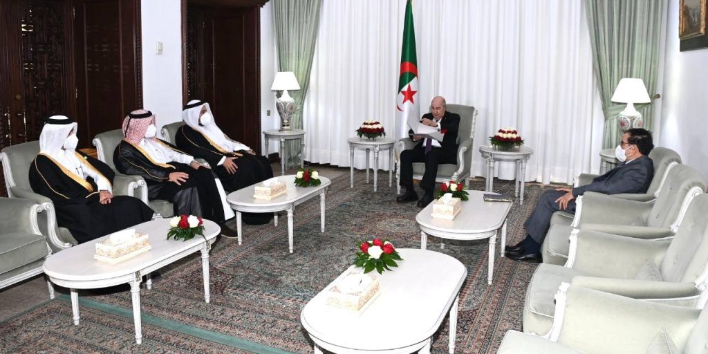 استقبل رئيس الجمهورية، السيد عبد المجيد تبون، الإثنين، بالجزائر العاصمة، مساعد وزير الخارجية القطري للشؤون الإقليمية، الدكتور محمد بن عبد العزيز الخليفي، مبعوثا خاصا حاملا لرسالة خطية من سمو أمير دولة قطر، الشيخ تميم بن حمد آل ثاني. وقد جرى الاستقبال بمقر رئاسة الجمهورية بحضور مدير ديوان رئاسة الجمهورية، السيد عبد العزيز خلف.