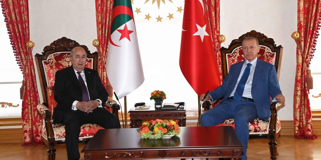 وكان الرئيس تبون، قد استُقبِل قبلها من طرف رئيس جمهورية تركيا الشقيقة أخيه، السيد رجب طيب أردوغان، بقصر “دولما باتشي” بإسطنبول. كما أجرى أيضا، أعضاء الوفد الوزاري الهام الذي رافق رئيس الجمهورية في زيارة العمل التي قادته إلى تركيا، محادثات ثنائية مع نظرائهم من حكومة جمهورية تركيا الشقيقة. ورافق رئيس الجمهورية في هذه الزيارة، وفد وزاري هام يتكون من وزير الشؤون الخارجية والجالية الوطنية بالخارج، أحمد عطاف، وزير المالية لعزيز فايد، وزير الطاقة والمناجم محمد عرقاب، وزير البريد والمواصلات السلكية واللاسلكية كريم بيبي تريكي، وزير الصناعة والإنتاج الصيدلاني علي عون، وزير التجارة وترقية الصادرات الطيب زيتوني، وزير السكن والعمران والمدينة طارق بلعريبي، وزير الأشغال العمومية والمنشآت القاعدية لخضر رخروخ ووزير اقتصاد المعرفة والمؤسسات الناشئة والمؤسسات المصغرة، ياسين المهدي وليد.