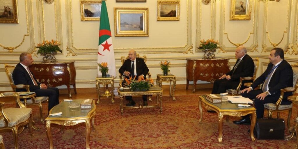 وحضر اللقاء وزير الشؤون الخارجية والجالية الوطنية بالخارج، السيد أحمد عطاف، ووزير الطاقة والمناجم، السيد محمد عرقاب.