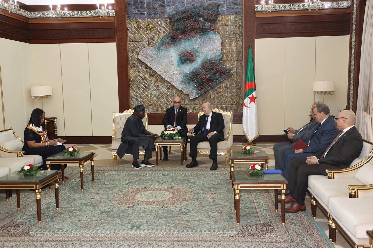 استقبل رئيس الجمهورية, السيد عبد المجيد تبون, الثلاثاء, الرئيس الأسبق لجمهورية نيجيريا الاتحادية, رئيس المجلس الاستشاري لمعرض التجارة البينية الإفريقية, السيد أوليسيجون أوباسانجو.