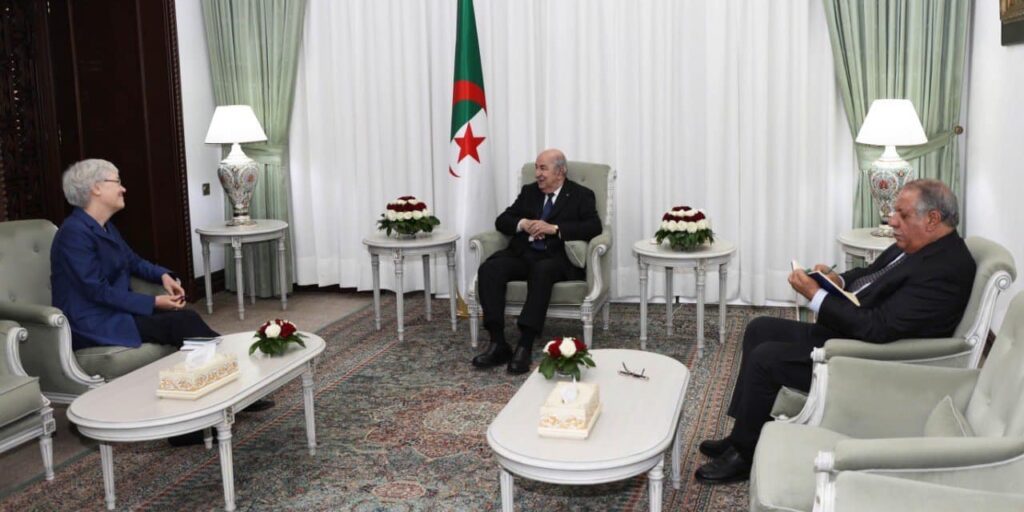 وفي سياق ذي صلة، لفت جيتاشو إلى أن تعاون الجزائر وإثيوبيا لا يقتصر على المجالات الثنائية، بل يتعداه إلى القضايا الدولية. بدورها قالت السفيرة الألمانية في تصريح صحفي عقب استقبالها من طرف رئيس الجمهورية، أن مستوى العلاقات بين الجزائر وألمانيا ممتاز، مبرزة أن هذه العلاقات تطوّرت خلال السنوات الماضية وشملت عديد المشاريع المشتركة وأشارت إلى تطوير التعاون في مجالات التنمية الاقتصادية المستدامة والانتقال الطاقوي، لا سيما ما تعلق بالمشاريع ذات الصلة بالهيدروجين، خاصة الهيدروجين الأخضر. كما استعرضت السفيرة الألمانية الآفاق الواعدة لهذا التعاون، سواء بالنسبة للجزائر وألمانيا أو لشركائهما، لأن هذه المشاريع تستقطب اهتمام عدد كبير من البلدان وذكرت من جانب آخر بتوقيع البلدين على اتفاقية تعاون ثقافي وعلمي ستسمح بمجرد دخولها حيز التنفيذ، بتكثيف التعاون الثنائي وتمكين المعهد الثقافي الألماني بالجزائر من العمل بشكل أكبر لتطوير التبادلات الثقافية بين الجانبين، فضلا عن ترقية اللغة الألمانية. من جهتها أكدت سفيرة هولندا بالجزائر دير فيلد قائلة لقد شكل اللقاء فرصة للحديث عن علاقتنا القوية وعن مجالات التعاون المشترك بين بلدينا، وأشكر الرئيس الجزائري على اهتمامه الواضح بتعزيز الشراكة بيننا مشيرة إلى أن القطاع الاقتصادي يتصدر قائمة مجالات التعاون الثنائي، لا سيما قطاع الزراعة والأمن الغذائي. وانطلاقا من إيمان بلادها بأن الطاقة الخضراء هي المستقبل، أوضحت أن هولندا تعتبر الجزائر ممونا موثوقا بهذا النوع من الطاقة وشريكا قويا في مجال تطوير الهيدروجين الأخضر، معربة عن أملها في أن يشكل ذلك مجالا آخرا لتعزيز شراكتنا مستقبلا مع ضرورة العمل معا للتخفيف من تداعيات التغيرات المناخية. كما توقفت أيضا عند التعاون المحقق بين الجامعات الجزائرية والهولندية وتبادل الخبرات بينهما وكذا مجال المقاولاتية، حيث قالت بهذا الخصوص في الجزائر، أصبح الشباب اليوم يمتلكون الشجاعة لتحقيق أحلامهم وإنشاء شركاتهم الخاصة. وأضافت بهذا الخصوص، يسعد هولندا مساعدة بعض هؤلاء الشباب من خلال برنامج “أورنج كورنرز” للمرافقة والتكوين، وقد أسعفني الحظ للقاء عديد هؤلاء الشباب الذين التمست لديهم روح المبادرة وريادة الأعمال. وحضر اللقاء مدير ديوان رئاسة الجمهورية، السيد بوعلام بوعلام.