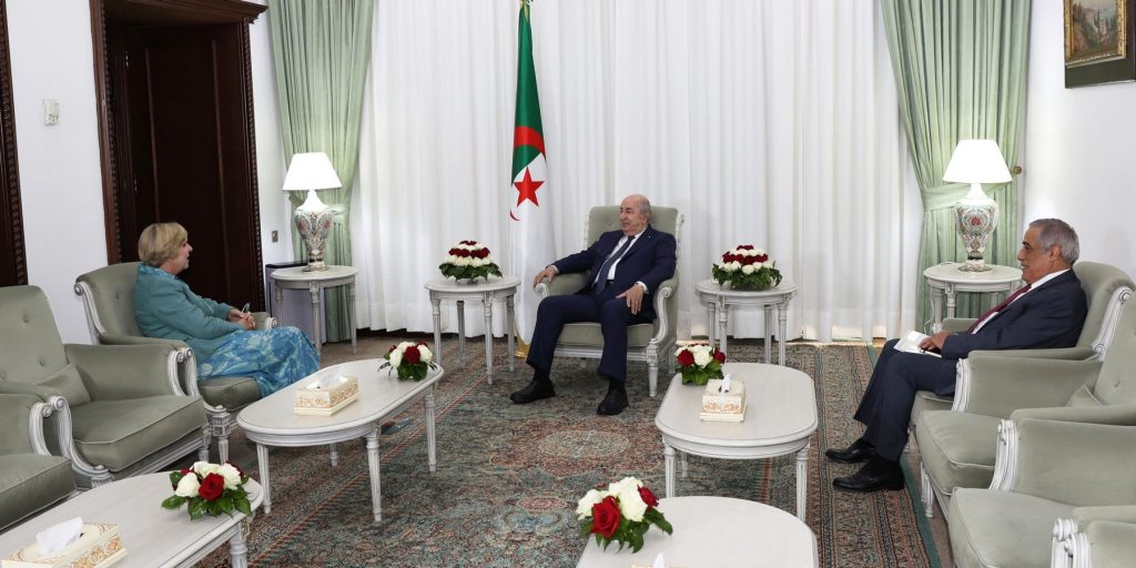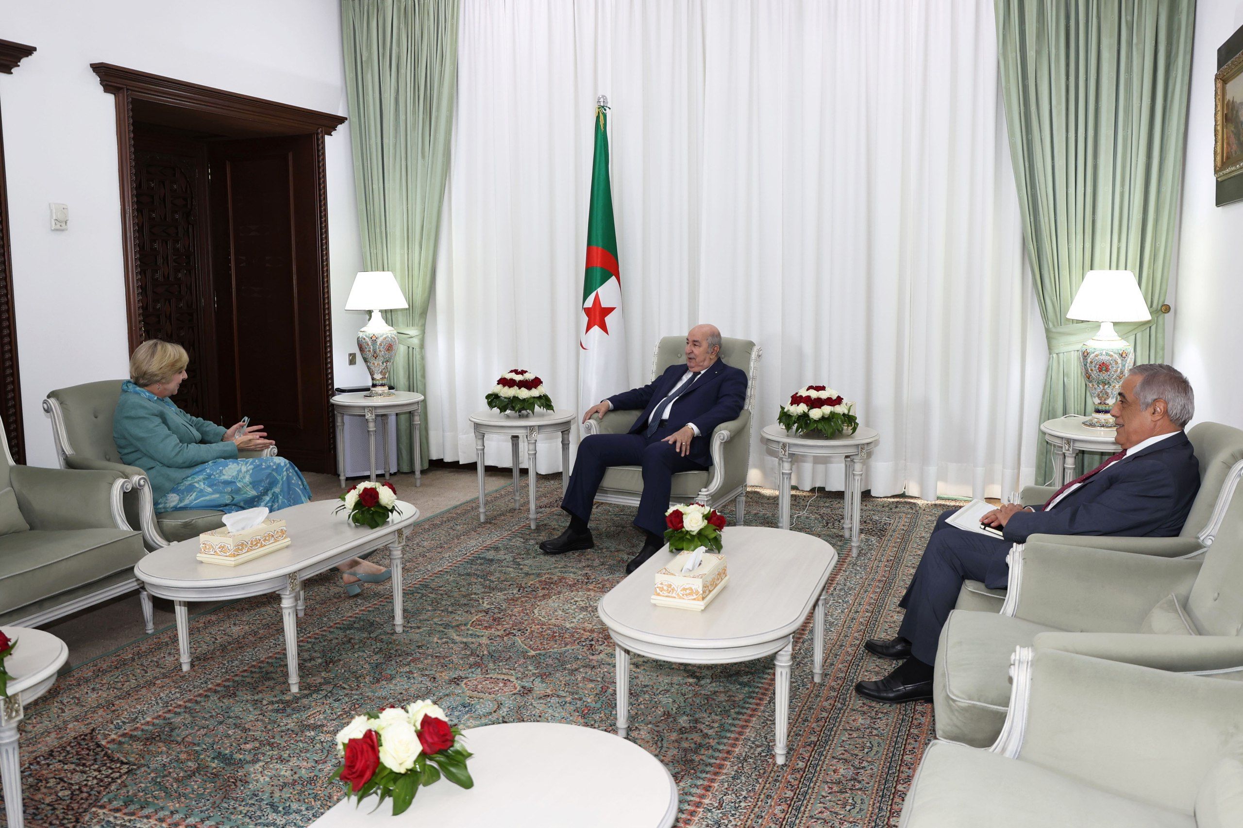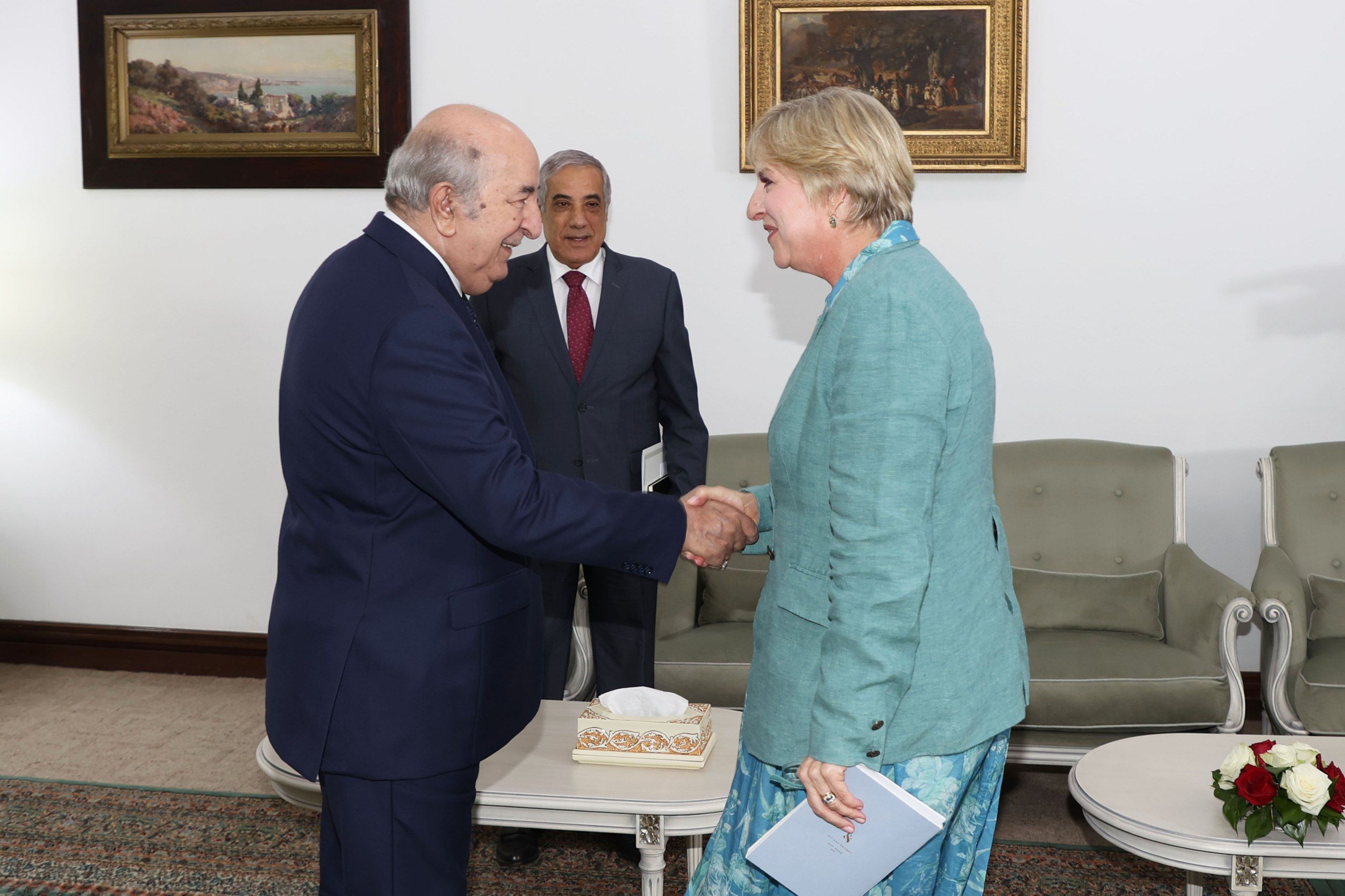 وجاء في البيان: “استقبل رئيس الجمهورية السيد عبد المجيد تبون، اليوم، سعادة سفيرة الولايات المتحدة الأمريكية بالجزائر، السيدة إليزابيث مور أوبين، بطلب منها”.