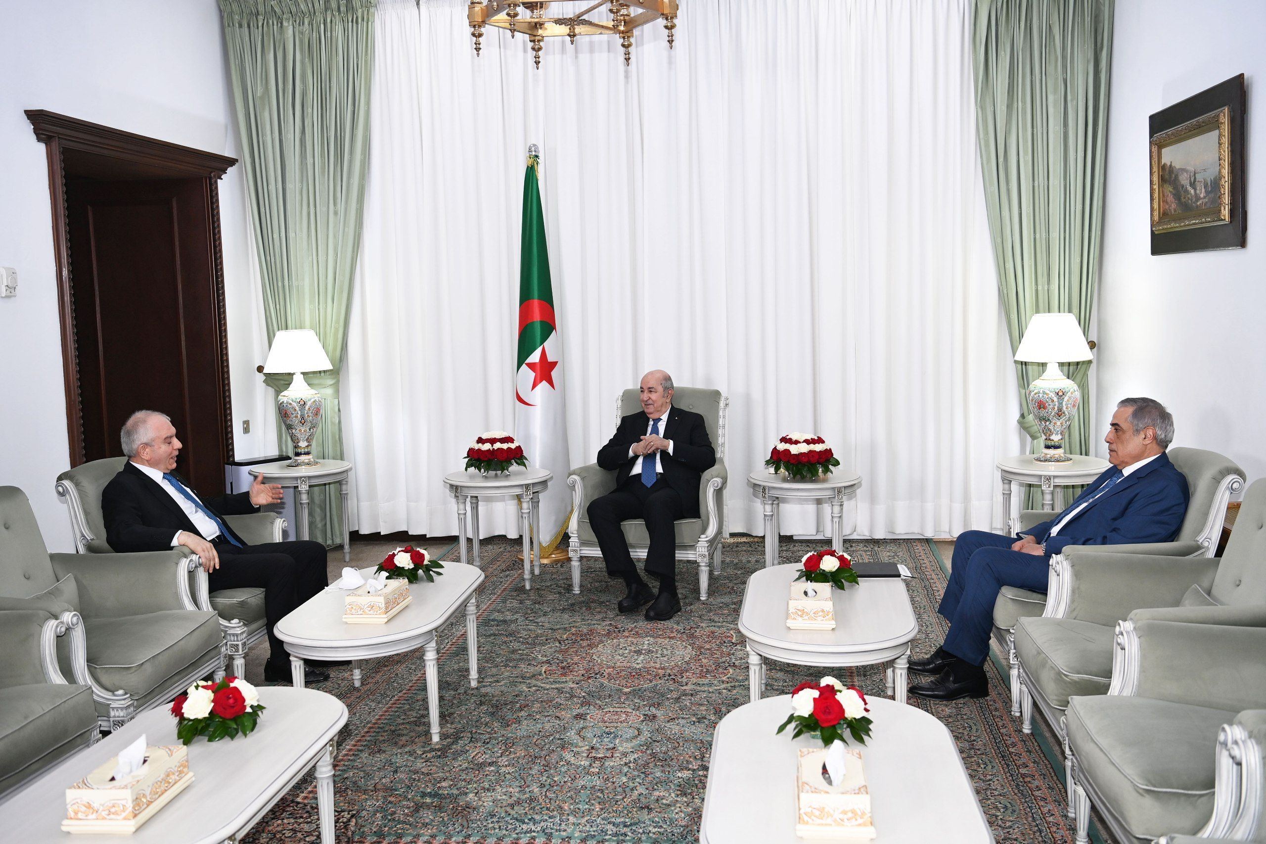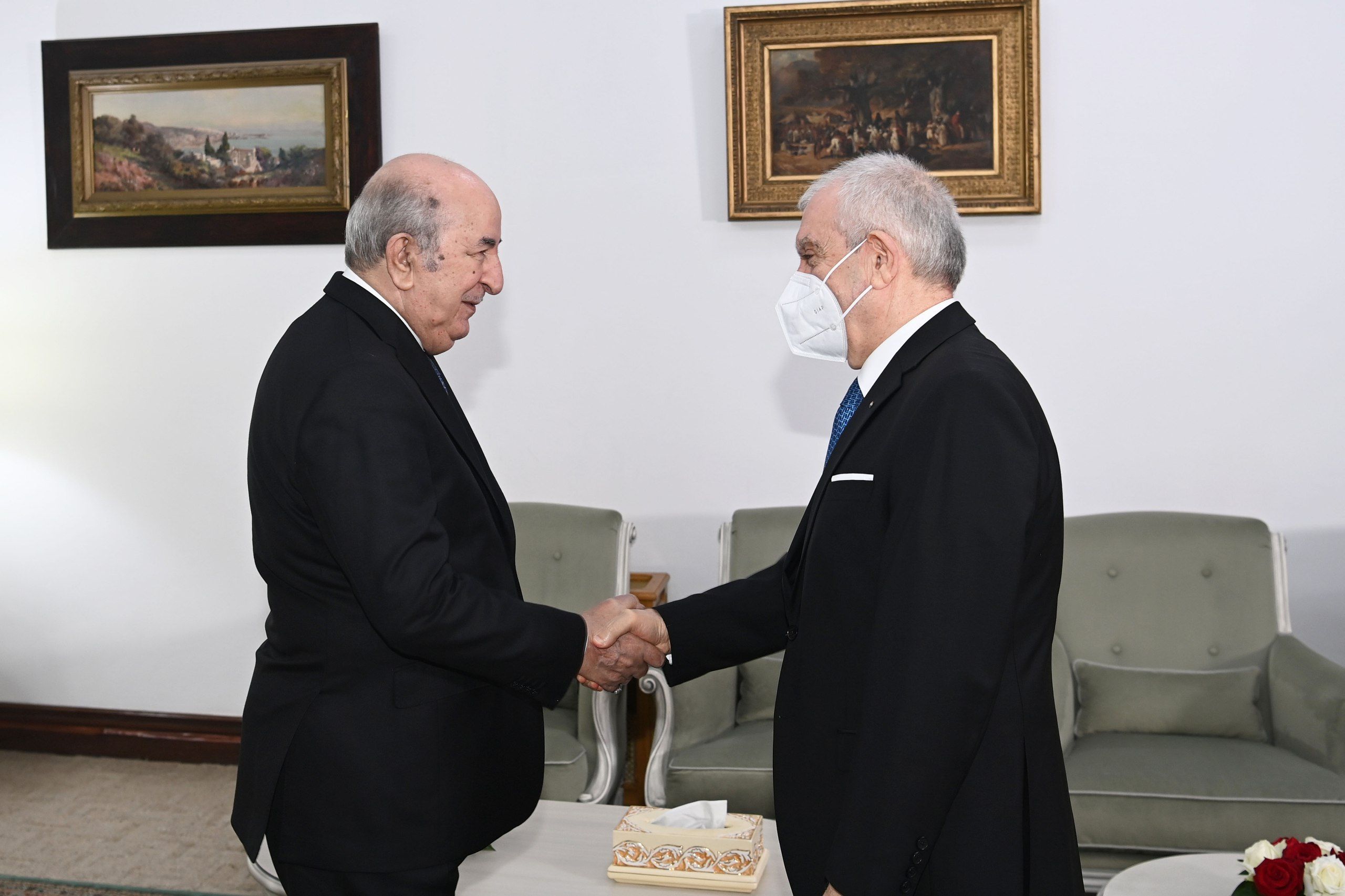 وقد جرى الاستقبال، بمقر رئاسة الجمهورية، بحضور مدير ديوان رئاسة الجمهورية، السيد محمد النذير العرباوي.