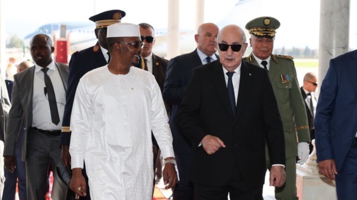 وتأتي زيارة رئيس جمهورية تشاد إلى الجزائر، في إطار مشاركته في الطبعة الرابعة لمعرض التجارة البينية الإفريقية التي ستقام بالجزائر ابتداء من اليوم الخميس إلى غاية 10 سبتمبر الجاري تحت شعار “بوابة العبور إلى فرص جديدة”. وقد استمع رئيس الجمهورية, رفقة نظيره التشادي, إلى النشيدين الوطنيين للبلدين قبل تحية العلم الوطني، واستعراض تشكيلات من الحرس الجمهوري أدت لهما التحية الشرفية.